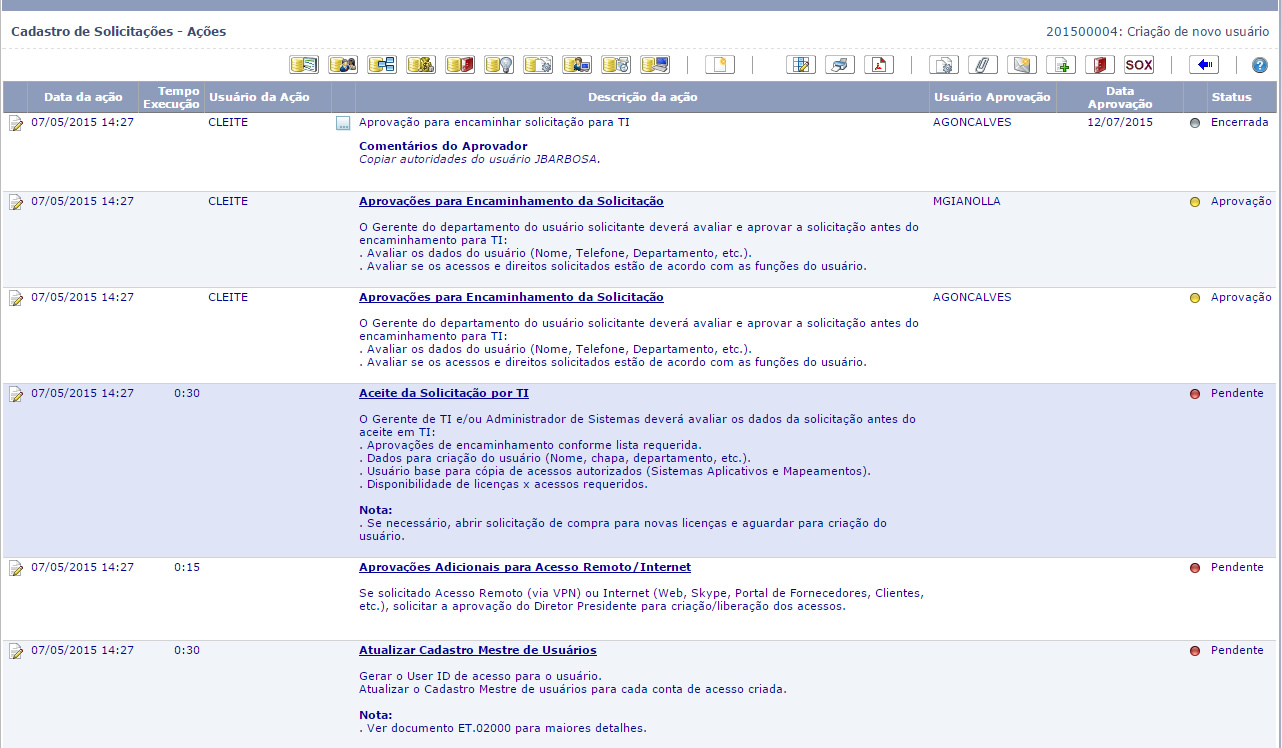 • Ações padronizadas para aprovações adicionais durante o atendimento da solicitação.