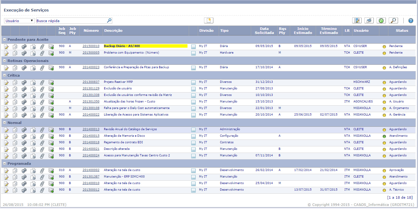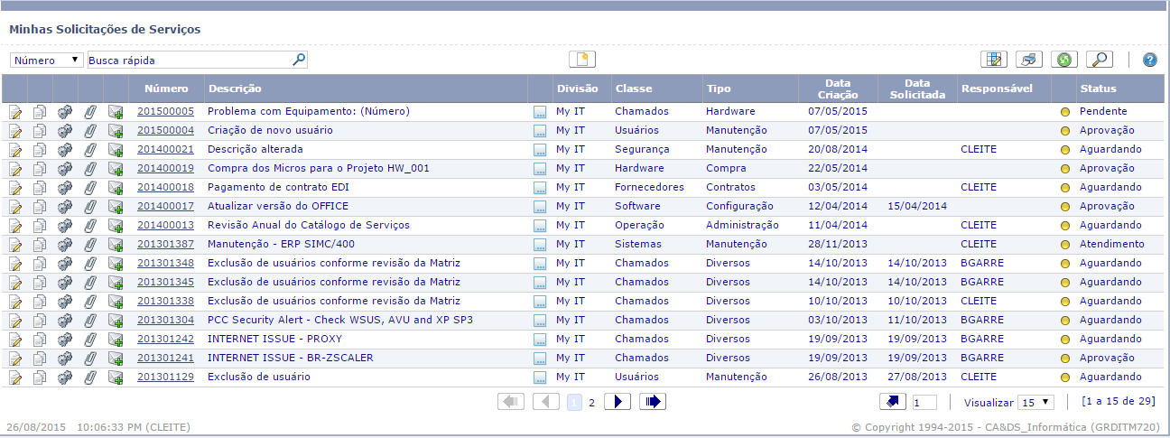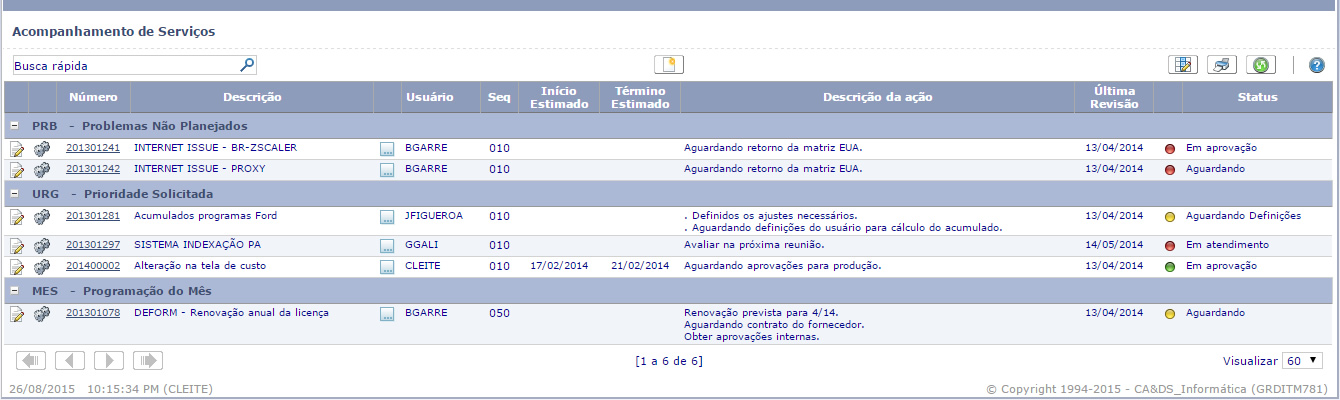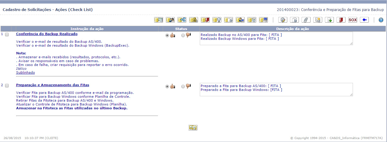 Os responsáveis pelas solicitações de serviços deverão interagir e reportar os trabalhos realizados com base nas Ações padrões definidas no CMS.