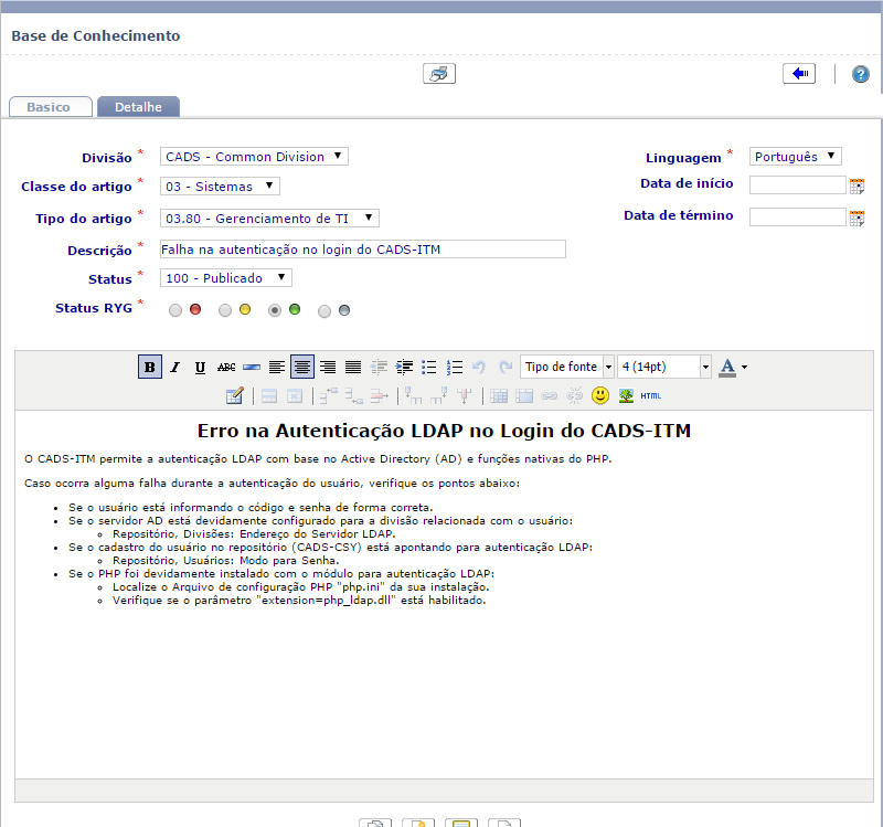 O CADS-ITM possuí um ambiente específico para que os usuários de recursos e sistemas administrados possam interagir com a equipe de TI.