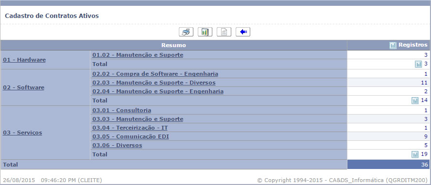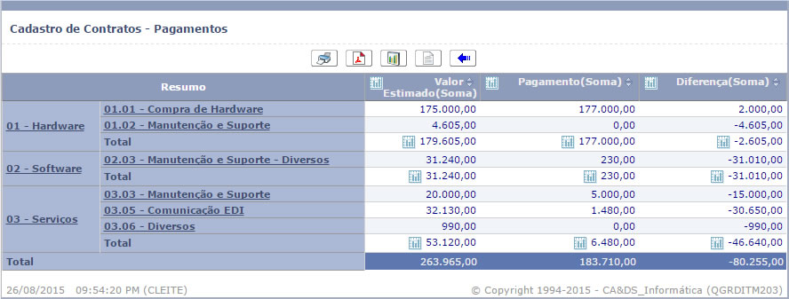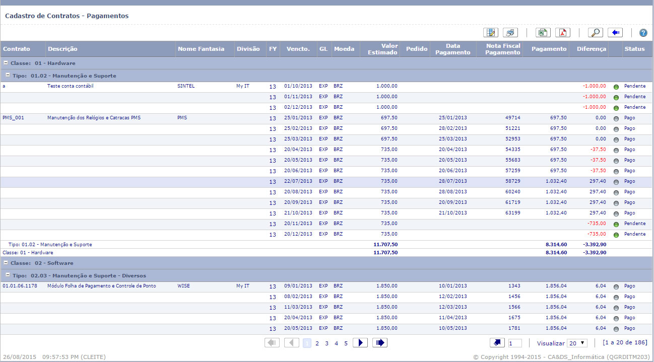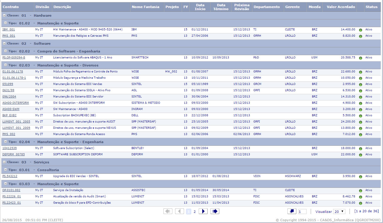 • Controle de todos os contratos e compromissos de pagamentos gerenciados por TI.