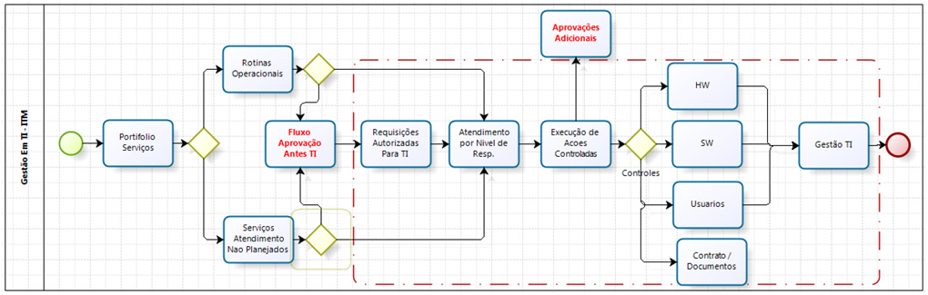 • Fluxo de aprovação para encaminhamento das solicitações para TI.
