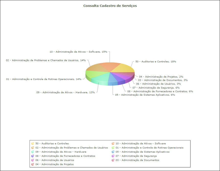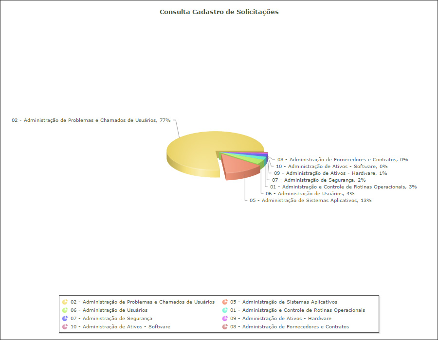 Cada solicitação de serviços (chamado) será gerada com base no portfólio de serviços (CMS) e controlada pelos responsáveis de TI conforme o nível de responsabilidade dentro de uma hierarquia definida.